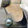 10mmと、大ぶりな黒蝶真珠とダイヤモンドをあしらったゴージャスなアイテム。その大きさと、照り、存在感はまさに圧巻。存在感抜群の主役級アクセサリーです。K18WGのチェーンはスライド式アジャスターがついているので長さの調節も楽々。パールの上でダイヤがゆらゆらスイングするデザインです。 |